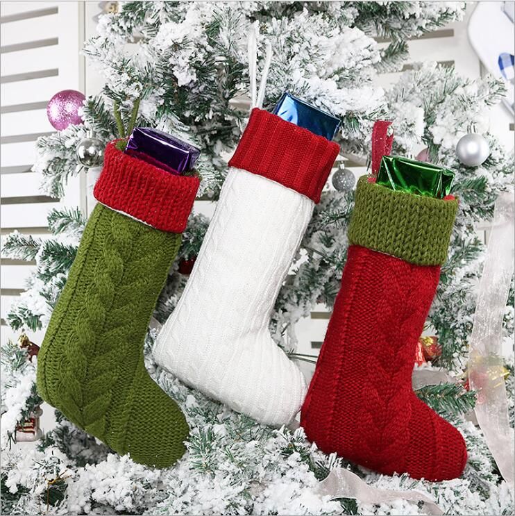 Knitted Christmas Stockings Decoration Twist Pattern Knitted Large Capacity Hanging Stocking Gift Bag Fireplace Xmas Ornaments